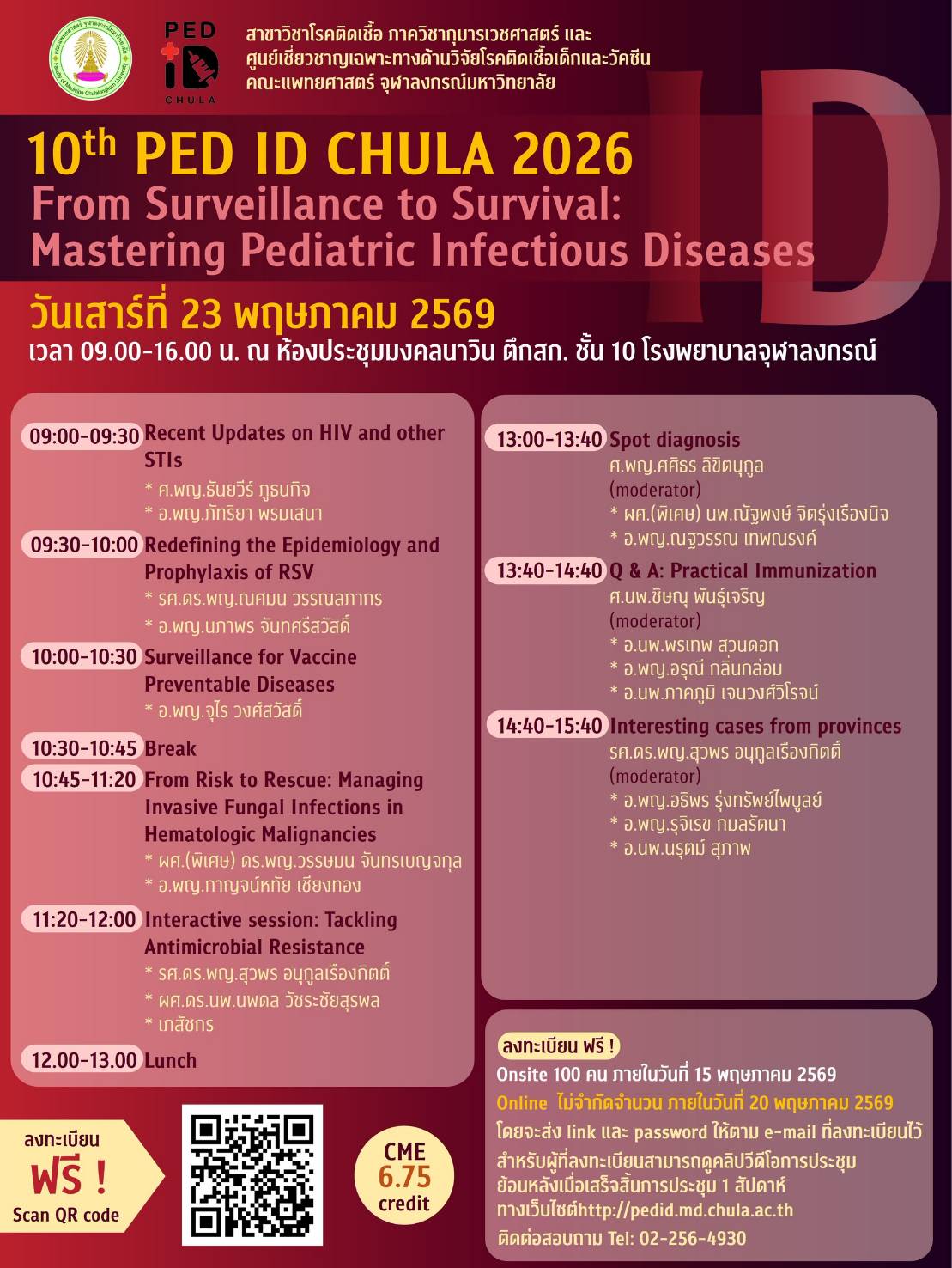 ลงทะเบียนฟรี ไม่มีค่าใช้จ่าย https://webcast.takeevent.com/pedidchula2026/