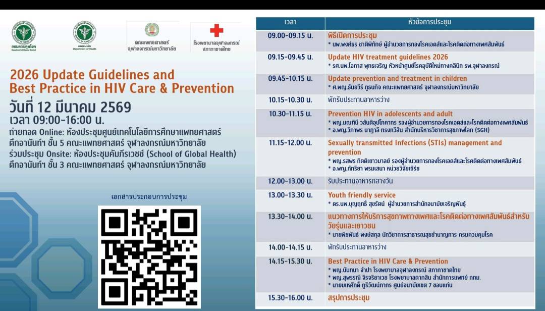 12 มีนาคม 2569 , 09:00 - 16:00 น. คณะแพทยศาสตร์ จุฬาลงกรณ์มหาวิทยาลัย